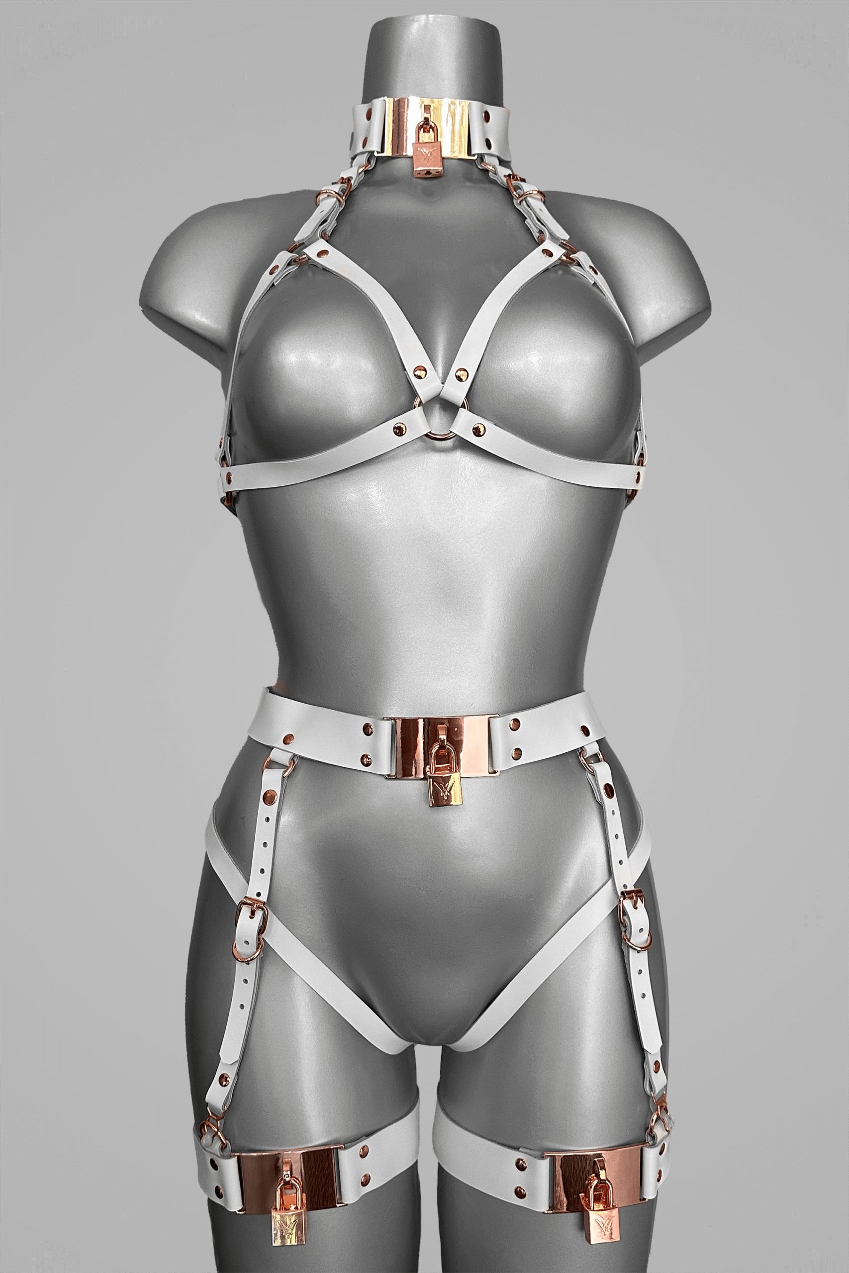 Open ontwerp, onbegrensde zelfexpressie: Ik heb dit harnas ontworpen met een open en verleidelijke vorm, bedoeld om gezien te worden en weinig aan de verbeelding over te laten. Het is mijn uitnodiging aan jou om ongeremd en schaamteloos jezelf te laten zien. De combinatie van zacht leer, verstelbare riempjes en verfijnde, nikkelvrije details met hangsloten zorgen voor een hoog draagcomfort, zodat jij vrij kunt bewegen en volledig kunt opgaan in het moment, zonder afleiding of ongemak.